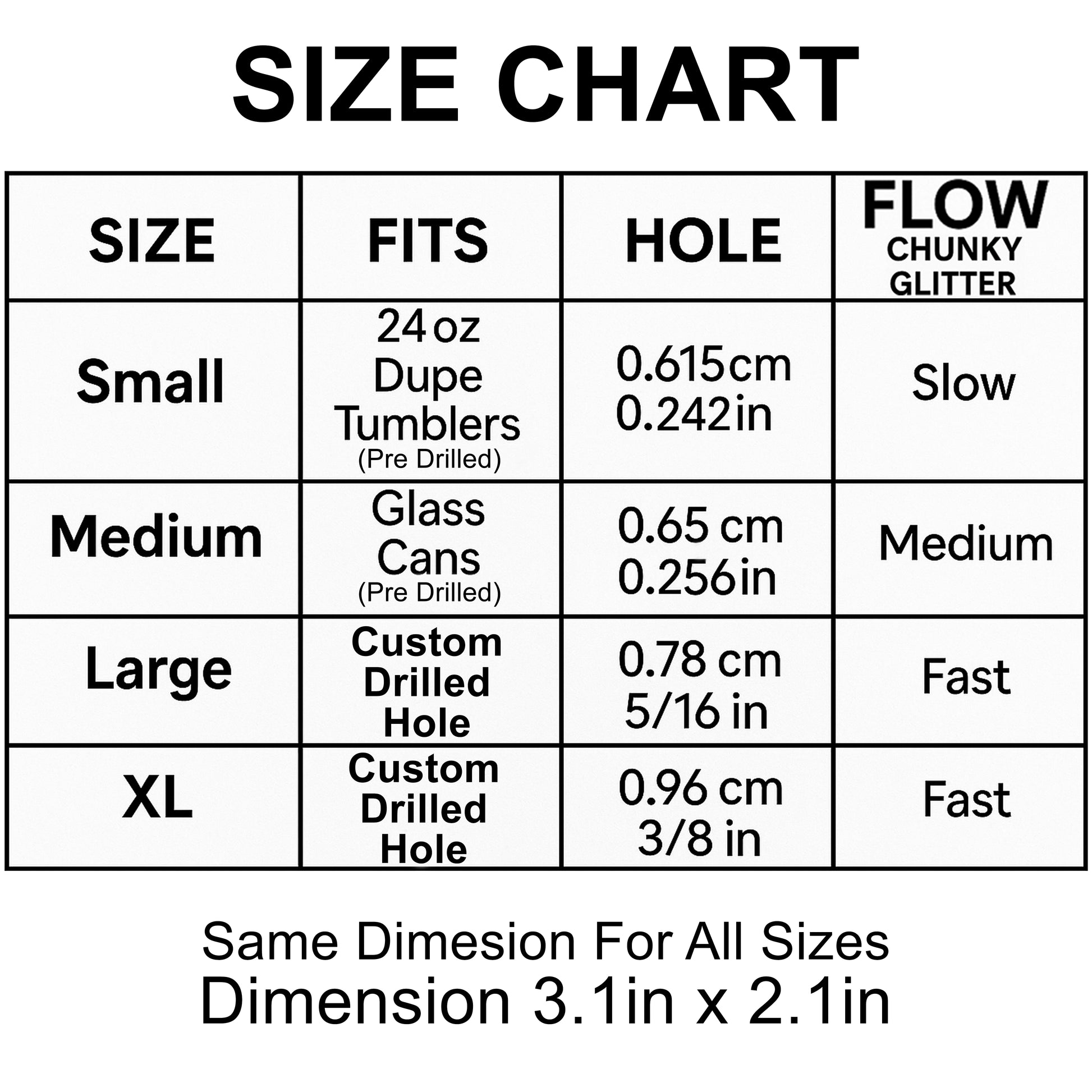 Choose your preferred size — the only difference is the hole opening size, allowing for different material flow.
